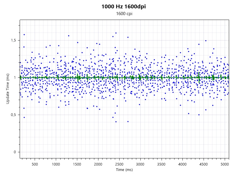 Im Gaming-Einsatz mit dem 2,4 GHz Modus überzeugt die Strix Impact III Wireless mit einem ordentlichen Tracking. Der ROG AimPoint-Sensor hat zu jeder Zeit sauber und ohne erkennbare Aussetzer gearbeitet. Der Polling Rate Test hat dabei aber eine Abtastrate mit minimalen Schwankungen offenbart.