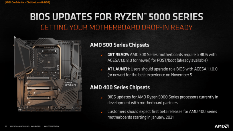 Sicher werden die Hersteller anlässlich der vielversprechenden Ryzen 5000/Zen 3 Vorstellung weitere neue Mainboards anzubieten. Wir möchten jedoch nochmal festhalten, dass die bisherigen Mainboards mittels BIOS/AGESA Update kompatibel sind, da man bei B550 und X570 verbleiben wird.