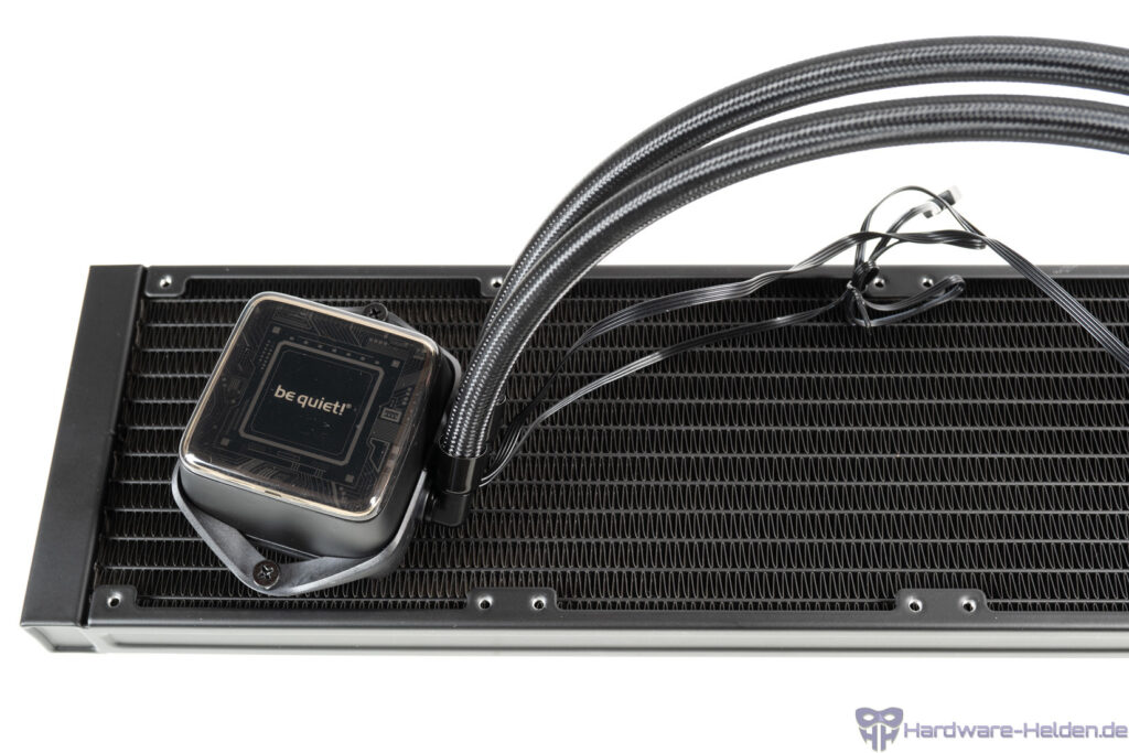 Die Pure Loop 3 LX, hier in der Variante Pure Loop 3 LX 360mm mit entsprechendem Radiator, ist schon auf den ersten Blick klar anders als die Vorgänger. be quiet! nutzt hier kein Design mit einer in die Schläuche ausgelagerten Pumpe mehr. Stattdessen ist diese wie bei den meisten AiOs in der Kühleinheit verbaut.