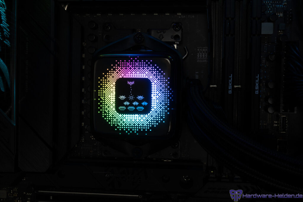 Das Pumpengehäuse verfügt über eine ARGB-Beleuchtung und unter dem transparenten Deckel können die Folien eingelegt werden. Damit sind auch abseits der Beleuchtung unterschiedliche Designs möglich. Gegen eine AiO mit Display natürlich wenig funktional und nicht sonderlich modern, aber dafür günstiger.