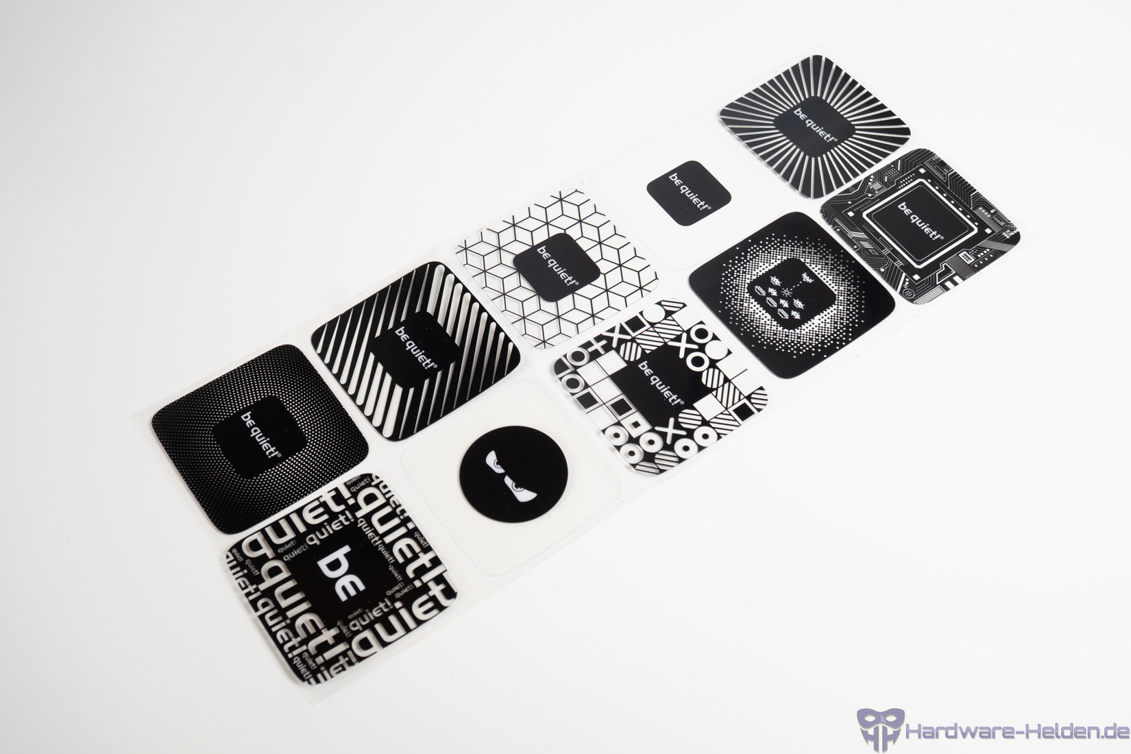 Bei der Pure Loop 3 LX fallen natürlich die zahlreichen Folienmotive im Lieferumfang auf. Zehn verschiedene Designs liegen bei. Ansonsten gibt es die Lüfter und das bekannte Montagematerial sowie Wärmeleitpaste. Außerdem gibt es hier noch ein Adapterkabel für die Lüfter. Flüssigkeit zum Nachfüllen liegt leider und überraschend nicht bei.