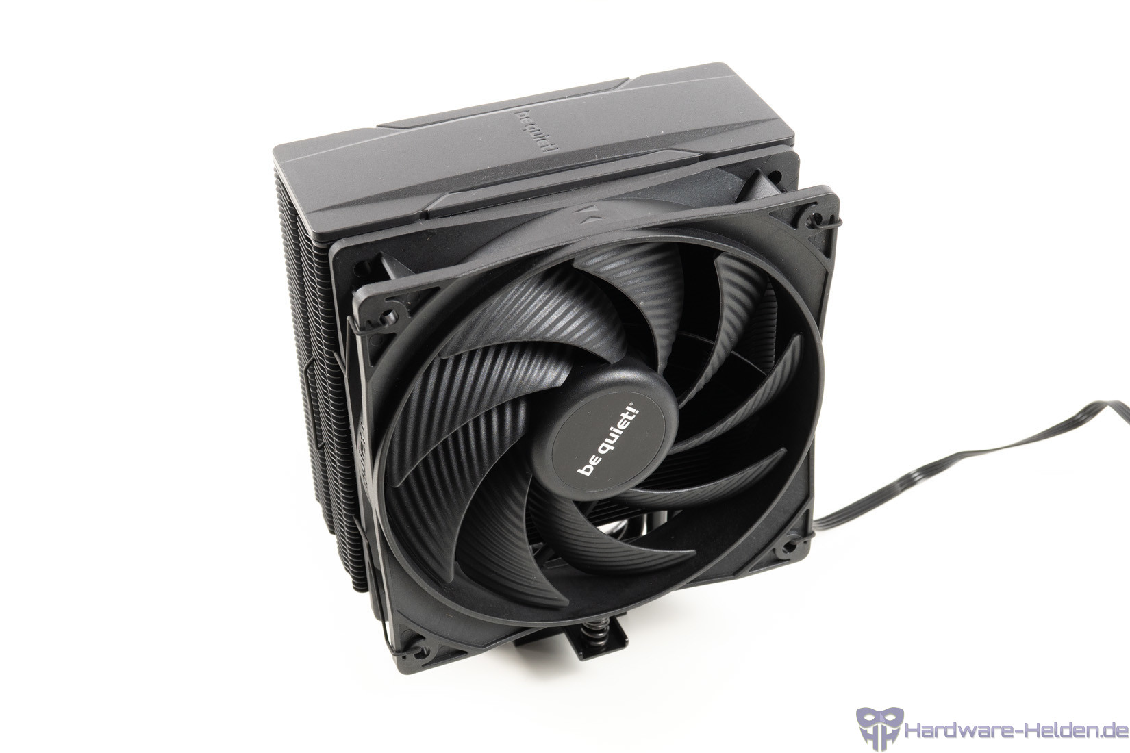 Der Pure Rock 3 kommt mit einem aktuellen Pure Wings 3-Lüfter im 120-mm-Format. Mit 2000 U/min wurde die maximale Drehzahl (und Lautstärke) im Vergleich zum Vorgänger erhöht, was sicher auch die TDP-Steigerung erklärt. Per PWM kann die Drehzahl natürlich gedrosselt werden.