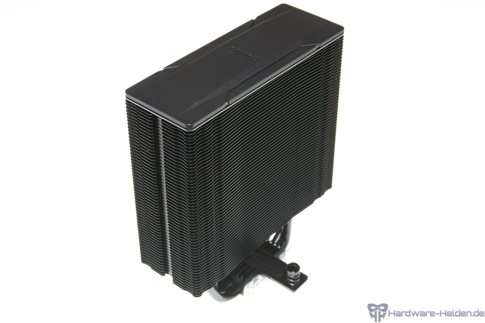 Die Heatpipe-Ausstattung ist mit vier 6-mm-Heatpipes ebenfalls typisch für diese Art Kühler und den Preisbereich. Das Gleiche gilt für die HDT-Technologie, also der direkte Kontakt zum Heatspreader und das Weglassen einer Bodenplatte.