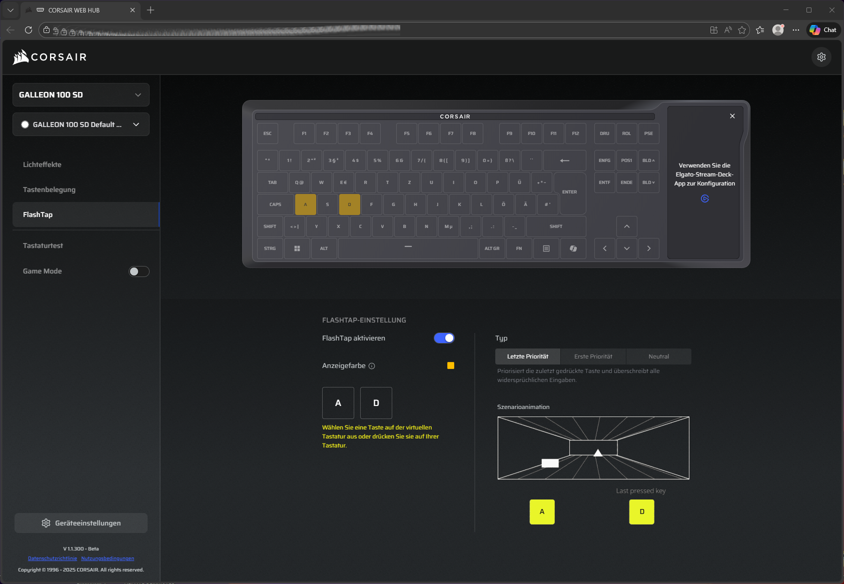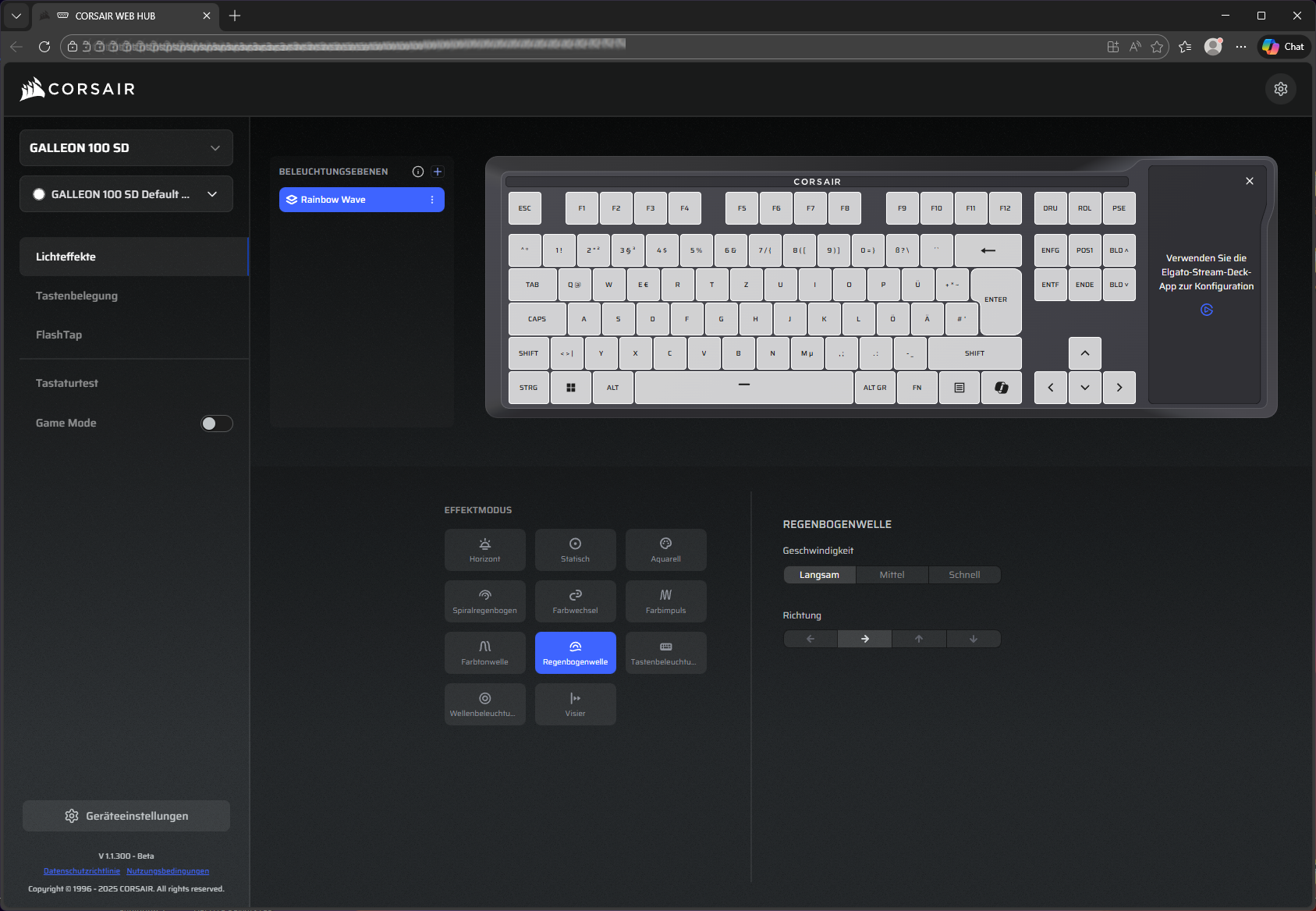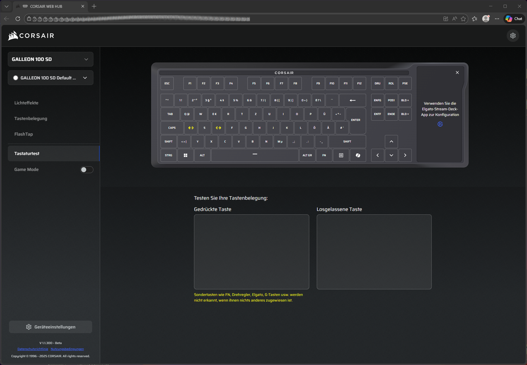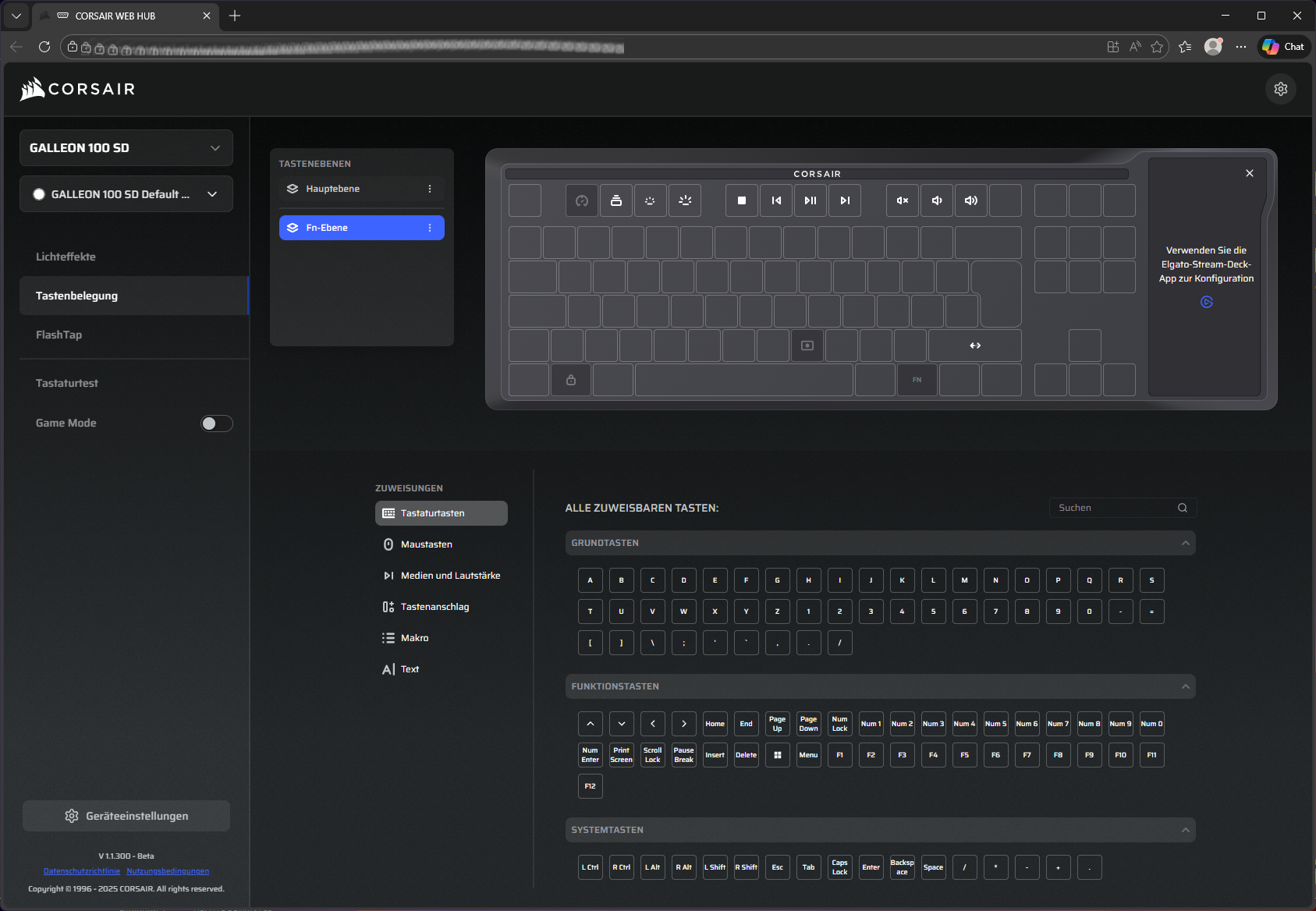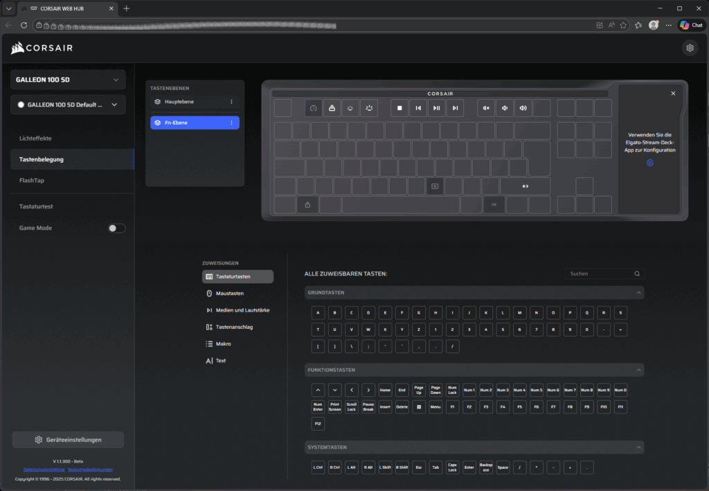 Wie schon zuletzt bei der Vanguard 96 wird auch die GALLEON 100 SD über Corsairs neuen Web-Hub konfiguriert: CORSAIR WEB HUB