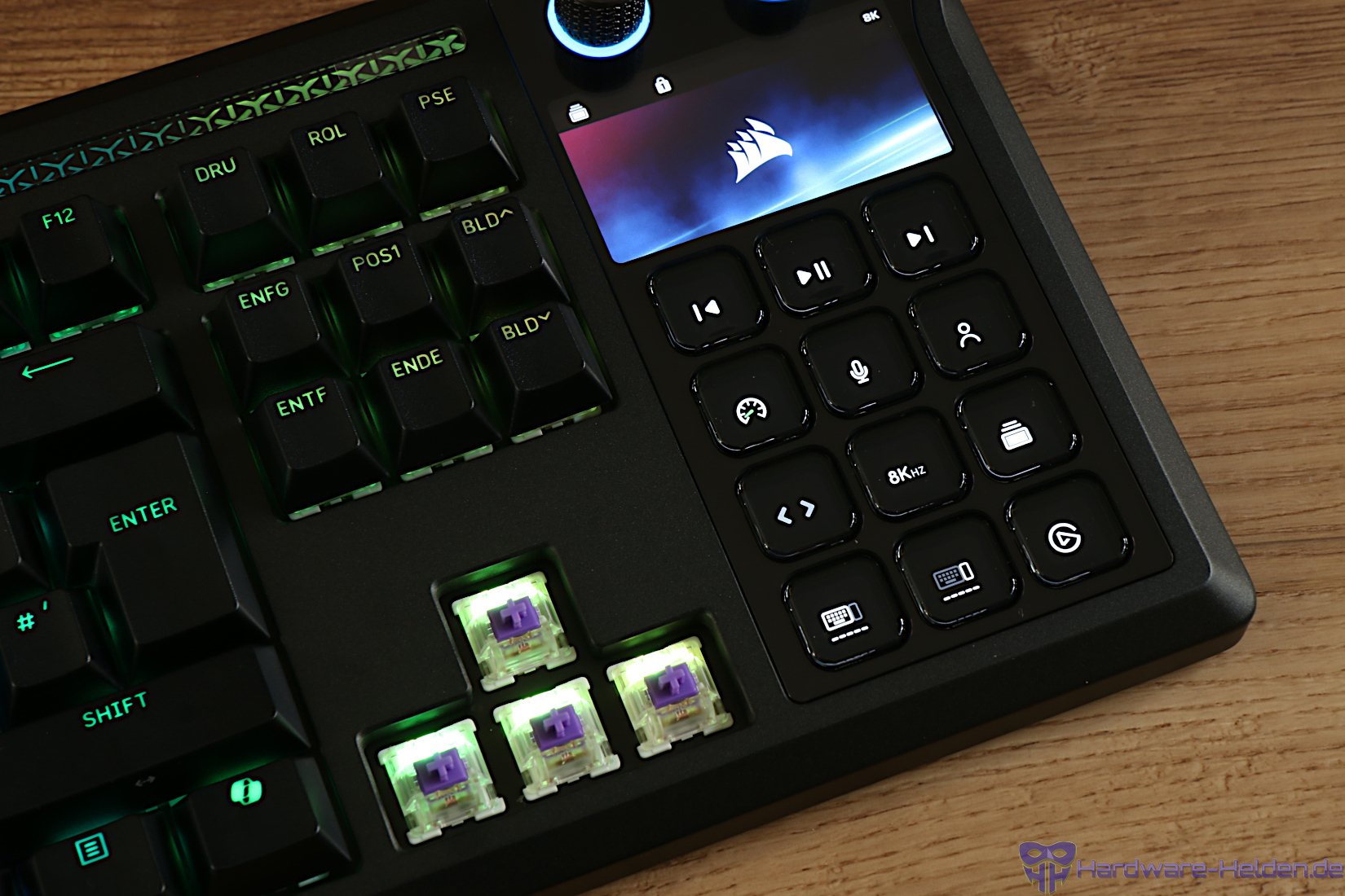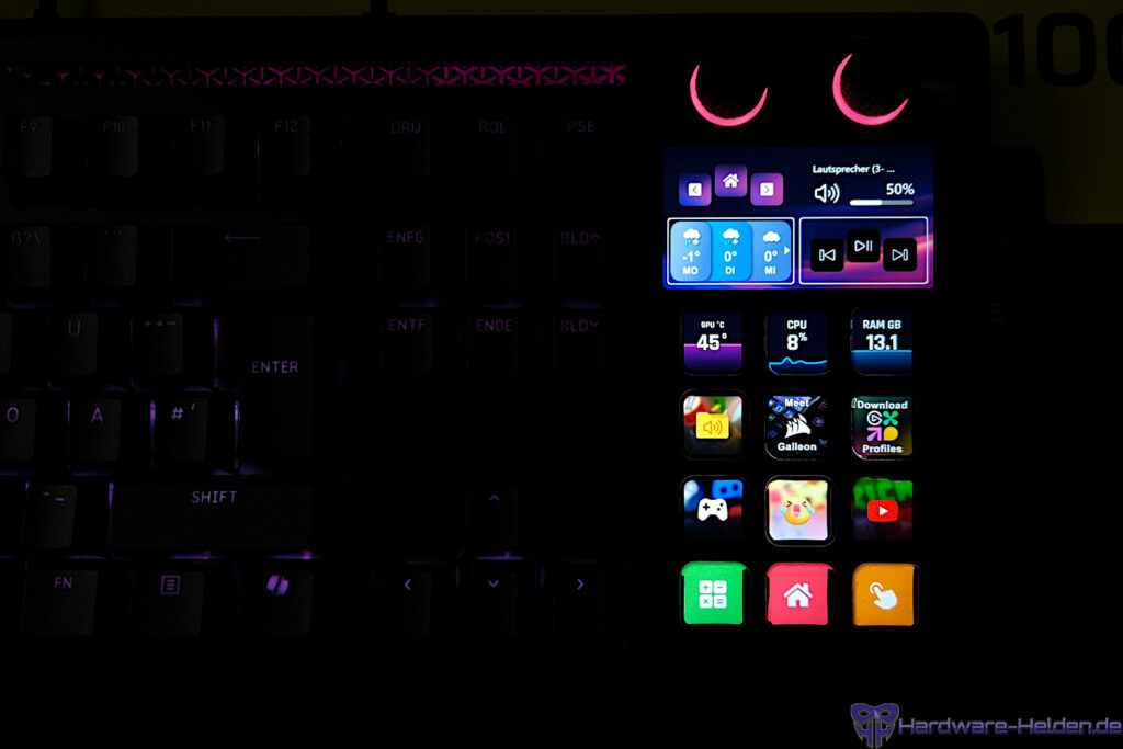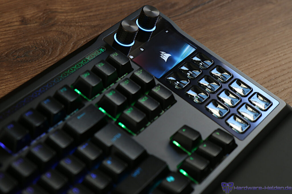 Auch ohne die Stream Deck Software sind die zusätzlichen Tasten und der Display nutzbar. Beispielsweise um Tastaturfunktionen wie Poling Rate oder Beleuchtung anzupassen oder aber ganz klassisch als Nummpad. Leider ist die Funktionalität für Aktionen außerhalb der Elgato Stream Deck Software nicht weiter anpassbar.