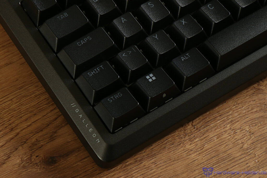 Die verbauten MLX Plasma Switches liefern einen leichtgängigen und linearen Tastenanschlag. Im direkten Vergleich zur K70 TKL Pro und der kürzlich getesteten Vanguard 96 ordnet sich die GALLEON 100 SD lautstärketechnisch zwischen beiden Tastaturen ein.