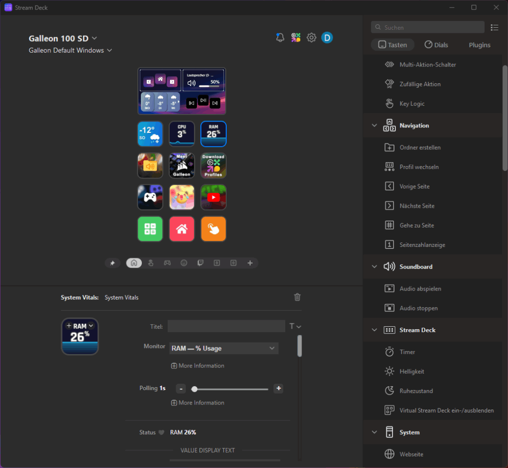 Über verschiedene Plugins kann man die zusätzlichen Tasten nicht nur als Content Creator nutzen sondern auch in andere Workflows einbinden oder aber gamebezogene Aktionen ausführen, Medien Steuern oder Hardwareinfos anzeigen lassen. Im Elgato Marketplace Shop gibt es dafür haufenweise kostenlose aber auch kostenpflichtige Plugins und Profile.