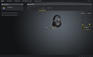 Durch die Installation von Corsairs iCUE Software erhält der Nutzer neben Lautstärkeregelung vom Mikrofon und verschiedenen Beleuchtungsmöglichkeiten auch Zugriff auf den Virtuellen 7.1 Modus.