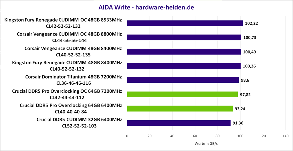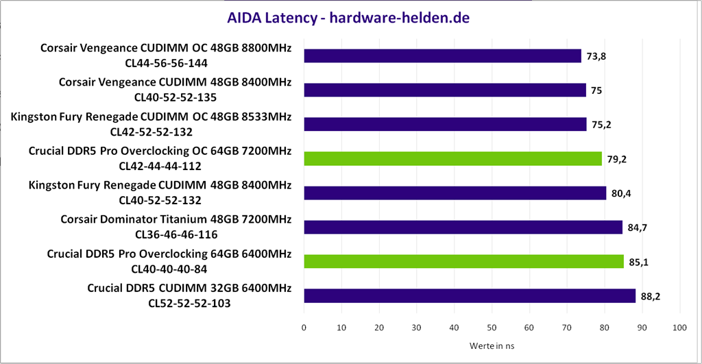Das vorliegende Kit war etwas zickiger als das zuletzt getestete Crucial Kit. Nach einer Spannungserhöhung auf 1,4V und ein wenig Finetuning bei den tertiären Timings konnten wir den RAM dann letztendlich auf 7200MHz bringen bei Latenzen von CL42-44-44-112. Das Overclocking hat sich auch auf die Temperaturen ausgewirkt, welche aber mit rund 50 Grad immer noch in einem vertretbaren Bereich lagen.