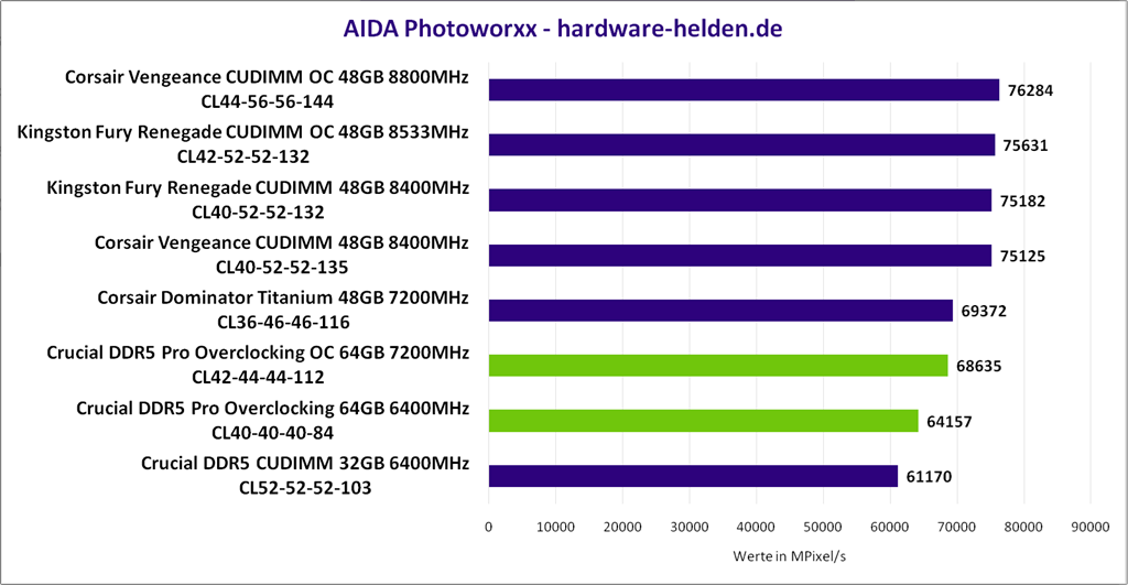 Das getestete 64GB Crucial DDR5 Pro Overclocking Kit konnte, trotz im Vergleich für den Takt eher hohen Timings mit einer soliden Performance überzeugen und benötigt im Gegenzug dafür auch nur eine geringere Betriebsspannung. Angesichts der hohen Speicherdichte der Module waren mit den Micron D-Die‘s ordentlich Overclocking-Ergebnisse realisierbar und dank des integrierten Temperatursensors kann man dabei stets die Hitzeentwicklung im Blick behalten.