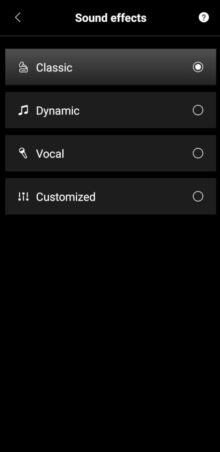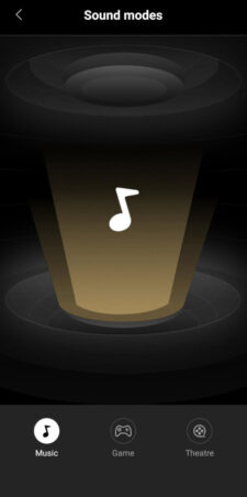 Es gibt drei grundlegende Klangprofile. „Classic“ als die Standardabstimmung und dazu „Dynamic“ und „Vocal“. Dazu nachher mehr. Weiterhin gibt es die „Sound Modes“. Musik entspricht der Standardeinstellung. Mit Theater soll mehr Raum erzeugt werden, was allerdings wie üblich irgendwie „falsch“ und hallend klingt.