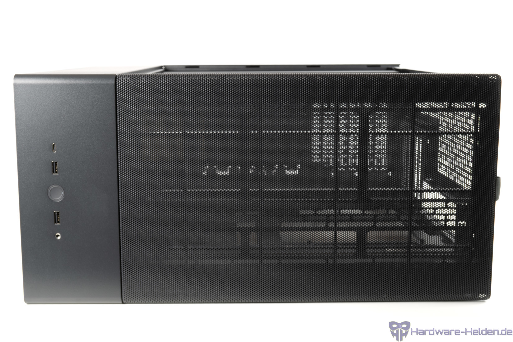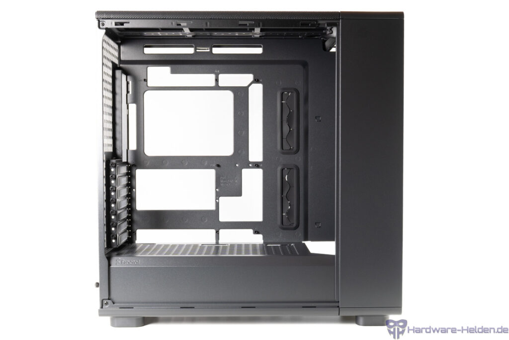 Die meisten Flächen sind großflächig perforiert. Extras findet man keine. Es gibt keine GPU Stütze, keine modularen Rahmen oder anderes, was man unbedingt erwähnen müsste. Auch ein Hecklüfter ist ab Werk nicht verbaut und dürfte maximal das 120-mm-Format haben. Der Lieferumfang ist auch auf ein paar Schrauben und Kabelbinder reduziert.