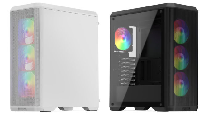 Das Gehäuse gibt es in drei Varianten: Ventum VT4, Ventum VT4V und Ventum VT4V ARGB. Das Basismodell wird mit zwei 120 mm Lüftern ausgeliefert, das VT4V und VT4V ARGB mit vier Lüftern. Letzteres dementsprechend mit digitalen RGB-Lüftern, was in Anbetracht der UVP von 69€ bemerkenswert ist.