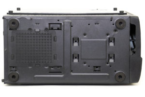 Das rechte Seitenteil besteht aus dünnem Stahl und ist zwecks Kabelführung stark ausgebeult, viel Platz hat man dennoch nicht.