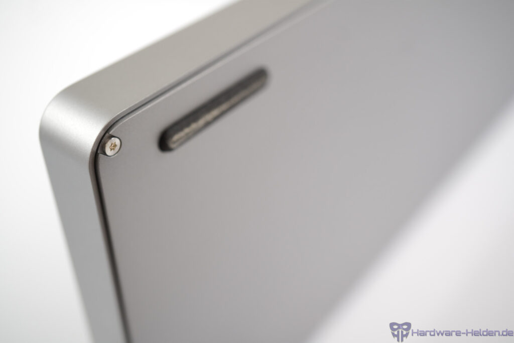 Auch die Positionierung des darüber liegenden USB-C-Anschlusses erscheint nicht gänzlich ideal. Man hat zwar ein angewinkeltes Kabel dabei, wir hätten eine rückseitige Verbindung aber praktischer gefunden.