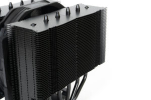 Beim NH-D15 chromax.black wurde der Kühlkörper nun komplett schwarz beschichtet und er wird mit den schon länger erhältlichen NF-A15 chromax.black Lüftern ausgeliefert. Sowohl Lüfter als auch Kühler entsprechen dabei technisch ihren ursprünglichen Geschwistern. Die schwarze NF-A15 PWM Lüfter drehen demnach mit 1500 U/Min und verfügen über identische Leistungsdaten. Auch beim Kühler sind die Dimensionen, die Lamellenanzahl (45) und auch die sechs 6mm Heatpipes unverändert.