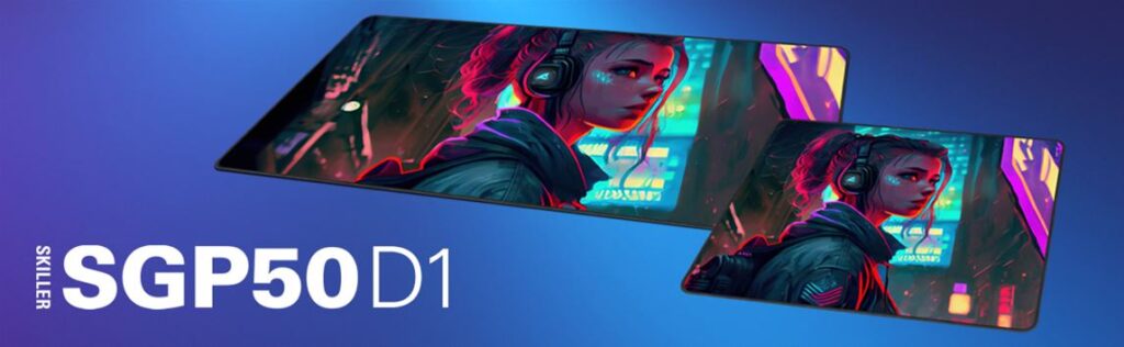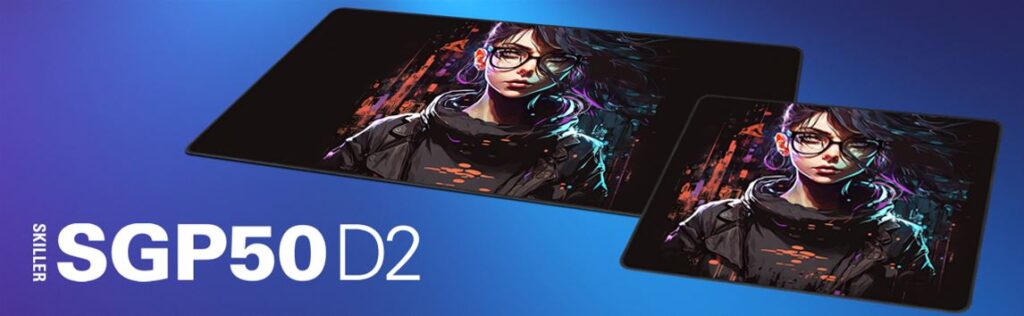 Die SKILLER SGP50 Mouse Mat wird in den drei Größen L, XL und XXL mit Abmessungen von 355 x 255 mm, 444 x 355 mm sowie 900 x 400 mm angeboten. Die Größe L ist dabei der schlichten schwarzen SKILLER SGP50 Black vorbehalten. Die SKILLER SGP50 D1 und SKILLER SGP50 D2 sind mit Comic-Motiven deutlich auffälliger gestaltet und in den Größen XL und XXL verfügbar.