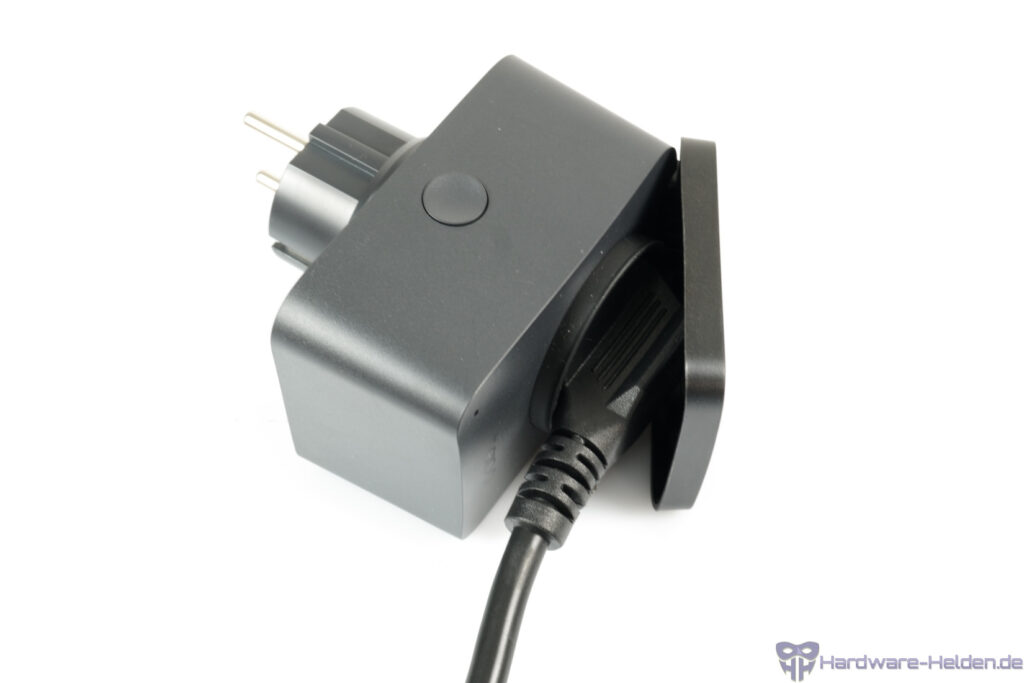 An der Seite befindet sich mit einem Knopf die einzige physische Bedienmöglichkeit. Mit diesem kann die Steckdose An/Aus geschaltet werden, die WLAN-Settings zurückgesetzt und der Auslieferungszustand wiederhergestellt werden, je nachdem wie lange man drückt. Die kleine LED zeigt den aktuellen Status an und wird in der Anleitung beschrieben.