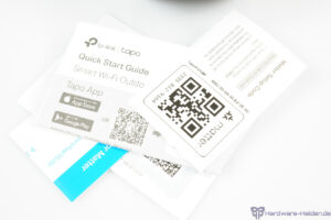 Im Lieferumfang der P410M befindet sich allerlei Zettelwerks mit kurzer Schnellstart-Anleitung zur Inbetriebnahme und ein Downloadhinweis für die Tapo-App, sonst gibt es nichts zu entdecken.
