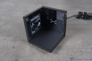 Am Boden ist eine Spiegelfläche eingesetzt, die Inhalte der Displays spiegelt. Bei (animierten) Mustern vergrößert es deren Wirkung noch einmal. Damit es bei Systeminformationen nicht seltsam aussieht oder wenn man die Spieglung einfach nicht möchte, kann die Platte auf eine mattschwarze Seite gedreht werden. Die Fläche zieht recht schnell gut sichtbaren Staub an und kann laut Hersteller genutzt werden um Deko/Figuren vor einem passenden Hintergrund zu präsentieren – jeder wie er möchte, aber es erklärt warum uns ein seltsames Püppchen mitgeschickt wurde. Eine integrierte CPU soll die Ressourcen-Belastung durch das Display reduzieren.